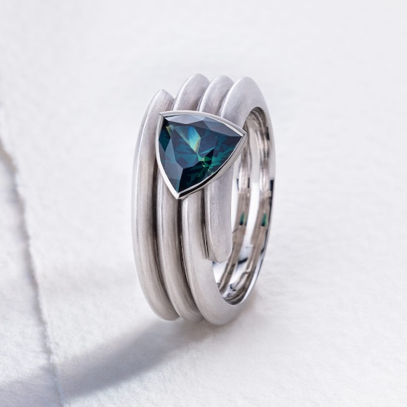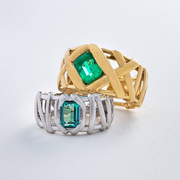Inspirées de l’épure antique, ces bagues enveloppent la pierre dans un mouvement organique.