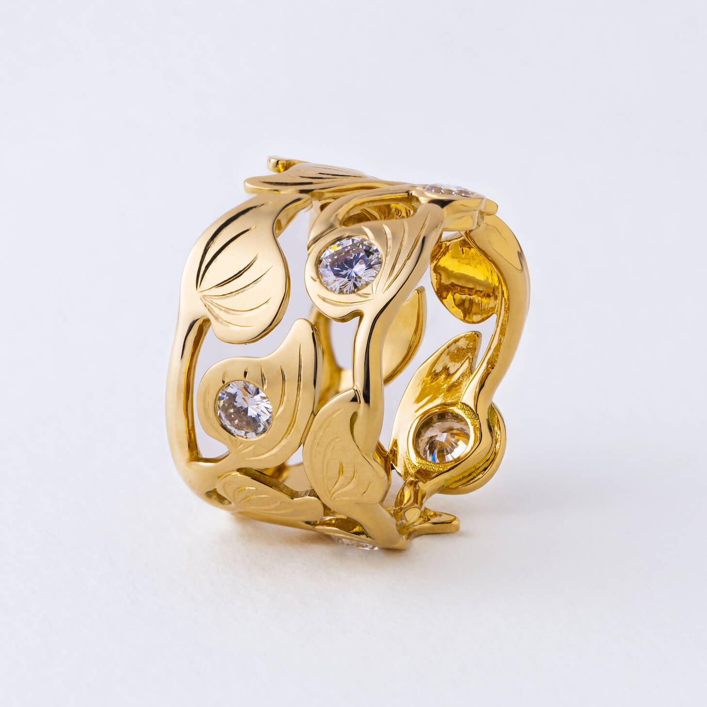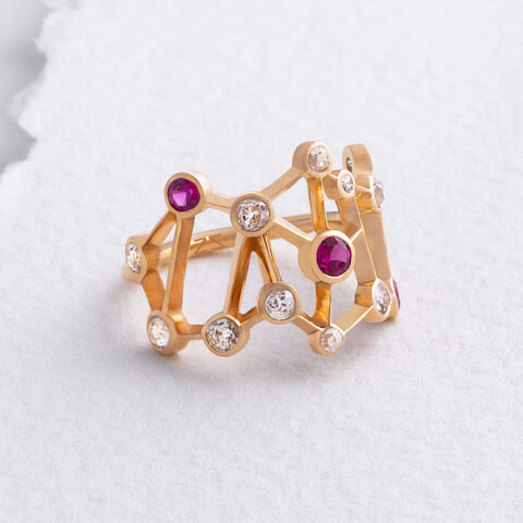 Toutes les étapes de la création, de mes dessins à la fabrication, sont exclusivement réalisées à la main, jusqu’à la façon dans notre atelier parisien de haute joaillerie. Selon votre souhait, je remonte vos pierres ou en sélectionne pour vous.